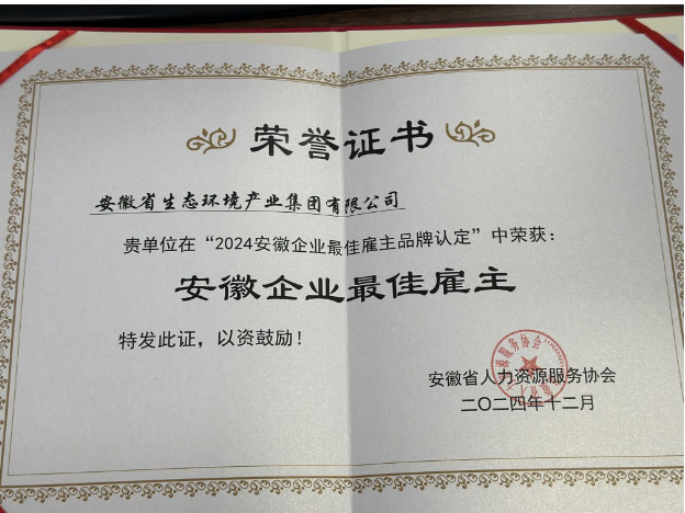 新年伊始,在由安徽省人力資源和社會保障廳指導、安徽省人力資源服務協會舉辦的“2024安徽企業最佳雇主品牌認定”活動中,省生態環境集團因出色的人力資源管理能力和良好的雇主口碑,榮獲“安徽企業最佳雇主”。