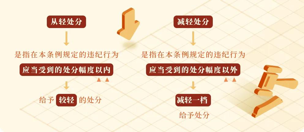 《中國共產黨紀律處分條例》規定有下列行為之一的,可以從輕或者減輕處分: (一)主動交代本人應當受到黨紀處分的問題。 “主動交代”是指涉嫌違紀的黨員在組織談話函詢、初步核實前向組織交代自己的問題,或者在談話函詢、初步核實和立案審查期間交代組織未掌握的問題。 (二)在組織談話函詢、初步核實、立案審查過程中,能夠配合核實審查工作,如實說明本人違紀違法事實。 這種情形是指被審查黨員在組織談話函詢、初步核實、立案審查過程中,如實說明組織已經掌握的本人違紀違法事實。 (三)檢舉同案人或者其他人應當受到黨紀處分或者法律追究的問題,經查證屬實,或者有其他立功表現。 “同案人”指與被審查人共同參與、實施了違紀行為的人,其中既包括黨員和黨的組織,也包括非黨員和非黨組織。 “其他人”指沒有與被審查人共同參與、實施違紀行為的人,既包括黨員和黨的組織,也包括非黨員和非黨組織。 “有其他立功表現”,是指提供其他案件的重要線索,阻止他人違法犯罪活動,協助抓捕其他職務犯罪案件被調查人、犯罪嫌疑人(包括同案犯),為國家挽回損失等情形。 (四)主動挽回損失、消除不良影響或者有效阻止危害結果發生。 “主動挽回損失”,是指違紀黨員在其實施的違紀行為已經造成損失的情況下,主動采取有效措施,挽回損失的行為。 “消除不良影響”,是指違紀黨員在其違紀行為已經造成不良影響的情況下,主動采取彌補措施,消除影響的行為。 “有效阻止危害結果發生”,是指違紀黨員在已著手實施違紀行為,但尚未造成危害結果的情況下,主動放棄繼續實施違紀行為,并主動采取積極措施阻止了危害結果的發生。 (五)主動上交或者退賠違紀所得。 這種情形是指主動將違紀所得上交組織。不包括將違紀所得退回送禮人等情形。 (六)黨內法規規定的其他從輕或者減輕處分情形。
