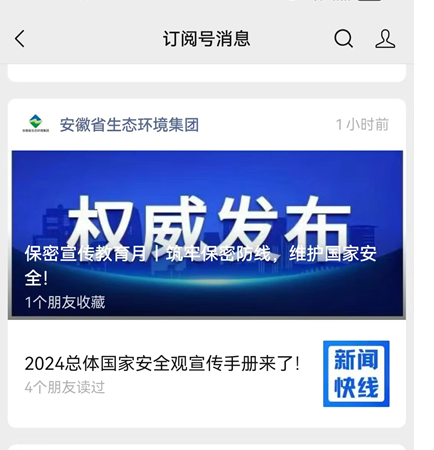 集團及部分子企業(yè)通過張貼普法宣傳海報、微信公眾號及普法專欄發(fā)布國家安全教育普法材料、組織員工參與在線答題,通過投屏播放宣傳視頻的方式積極引導(dǎo)員工增強國家安全意識和法治觀念。