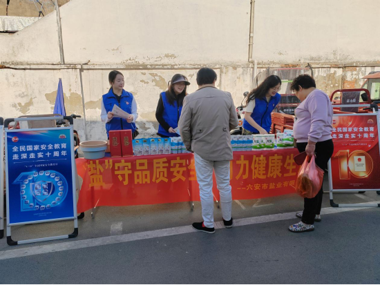 六安鹽業(yè)公司黨員志愿者走進(jìn)開發(fā)區(qū)小廟農(nóng)貿(mào)集市,設(shè)立普法宣傳點(diǎn),向居民宣傳國家安全相關(guān)知識,普及食鹽安全知識。