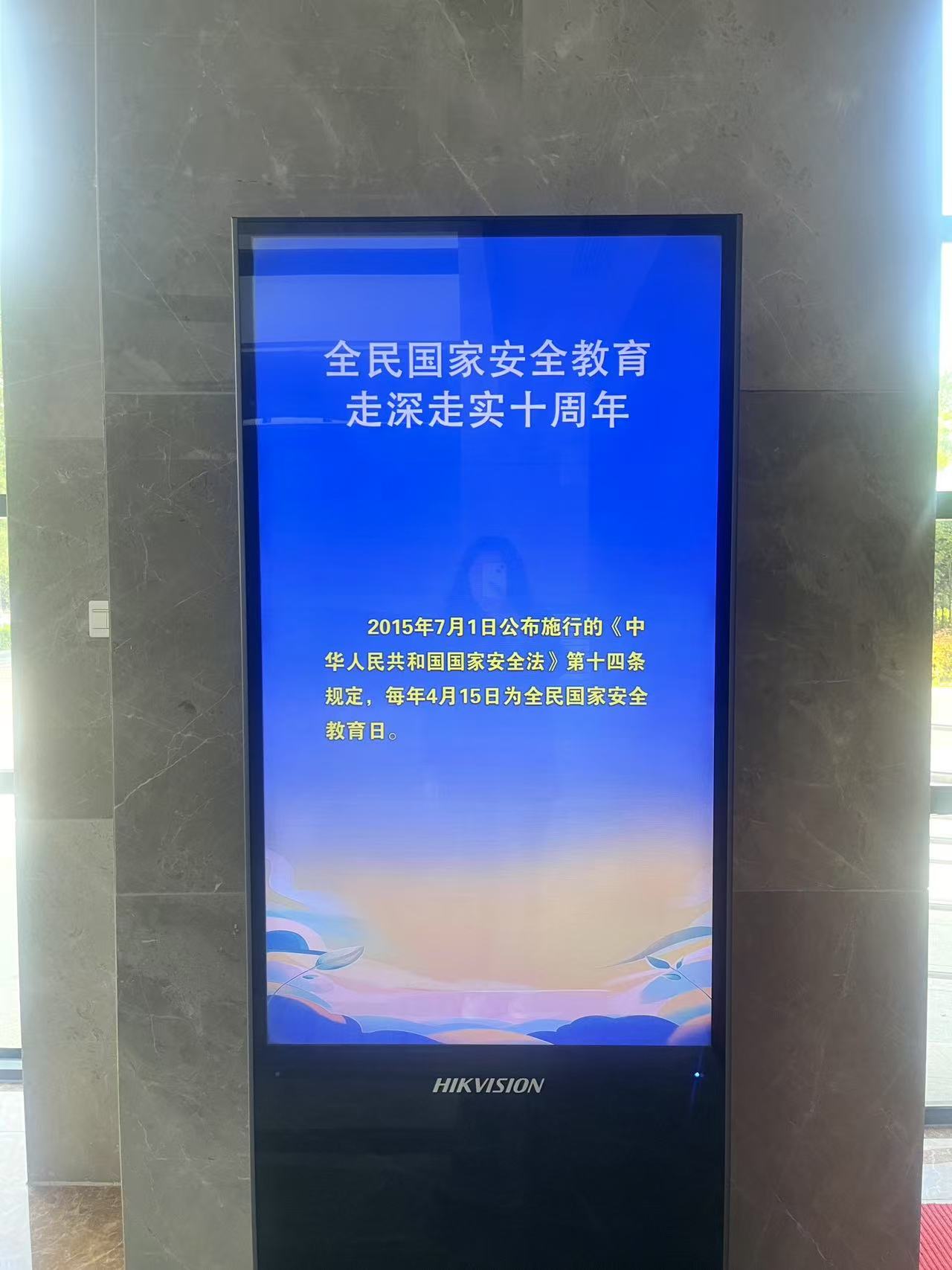 環(huán)境科技集團(tuán)在辦公區(qū)域張貼“全民國家安全教育 走深走實(shí)十周年”主題海報,以醒目圖文傳遞國家安全核心要義;運(yùn)用LED顯示屏播放“4.15全民國家安全教育日”PPT,一樓大廳連續(xù)滾動播放宣傳海報及警示案例,覆蓋員工日常辦公動線。