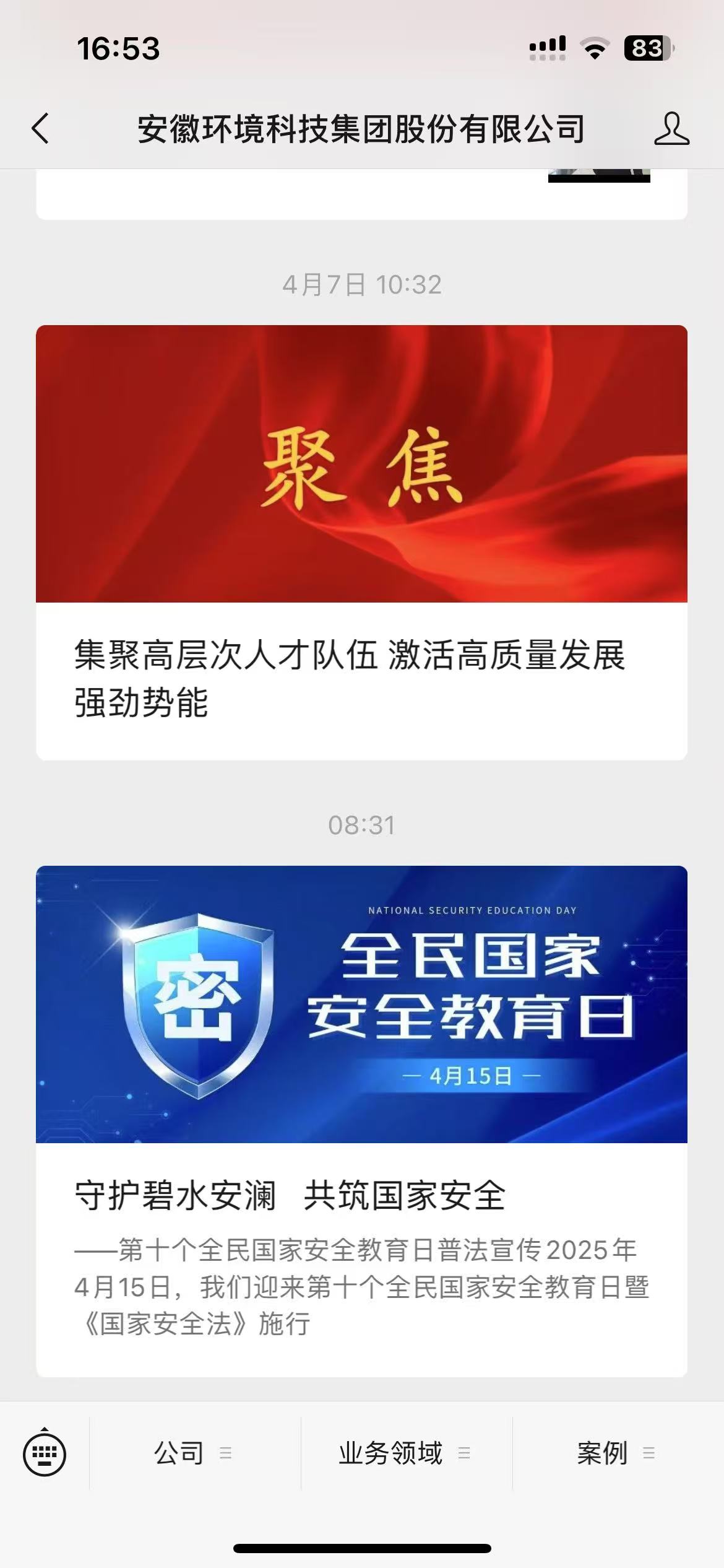 地產(chǎn)集團(tuán)微信群每日推送國家安全知識圖解、微視頻,以“碎片化學(xué)習(xí)”提升普法滲透力;集團(tuán)公司、環(huán)境科技集團(tuán)微信公眾號發(fā)布專題推文《國家安全,你我同行》,通過案例剖析、法條鏈接等形式,生動解讀《國家安全法》《反間諜法》;徽鹽金融等子公司組織線上答題活動,覆蓋全員,以考促學(xué)鞏固國家安全基礎(chǔ)知識,參與率達(dá)100%。