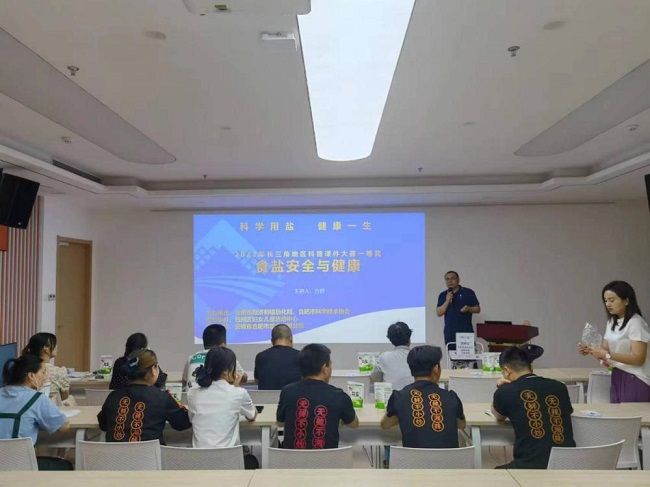 本次宣傳活動由合肥市經(jīng)信局、合肥市科協(xié)主辦,包河區(qū)婦女兒童服務中心承辦。合肥鹽業(yè)營銷中心副主任方巖分別從“關于鹽的一些事”“甲狀腺與碘的那些事”“齁不住的中國人要減鹽”三個方面,向參會人員普及了食鹽的主要成分、科學補碘、健康減鹽等知識?;訂柎瓠h(huán)節(jié),參會人員踴躍參與,積極發(fā)言,現(xiàn)場氣氛熱烈。本次活動進一步加強了碘缺乏病防治知識和食鹽科普知識的宣傳教育,提高了群眾科學補碘和安全用鹽意識,讓“少吃鹽、吃好鹽、用好鹽”的理念更加深入人心。